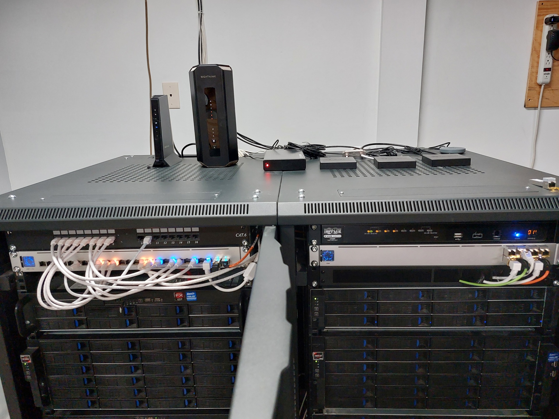 December 19, 2012 The main server has been rebuild into a 2RU Norco RPC-2208 case. The additional 2RU of rack space will be used for a storage expansion unit for the backup server.